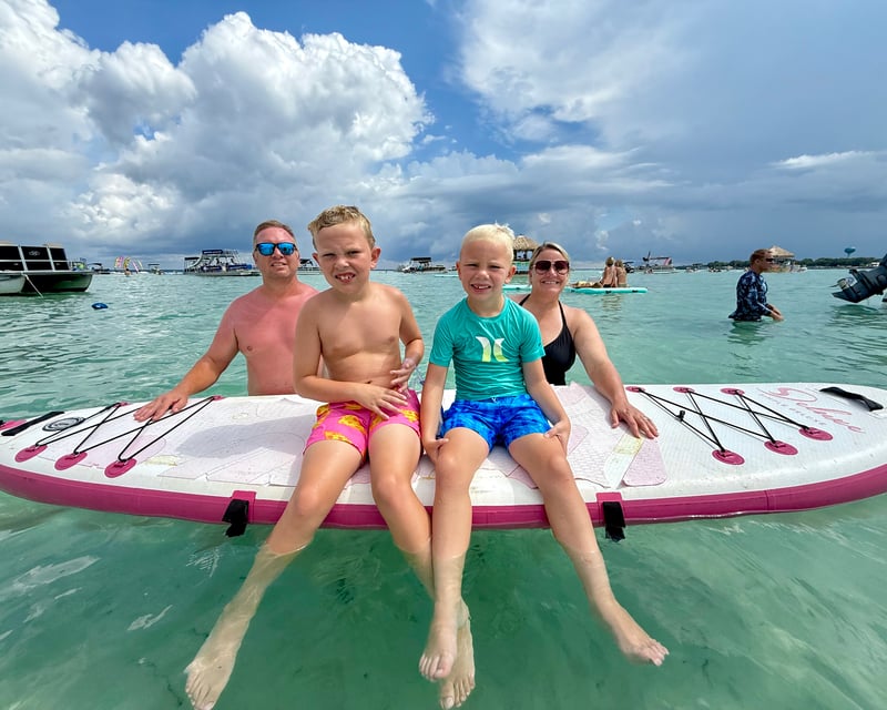 Private tiki cruise to Crab Island with ice, water, floats, and a paddleboard included