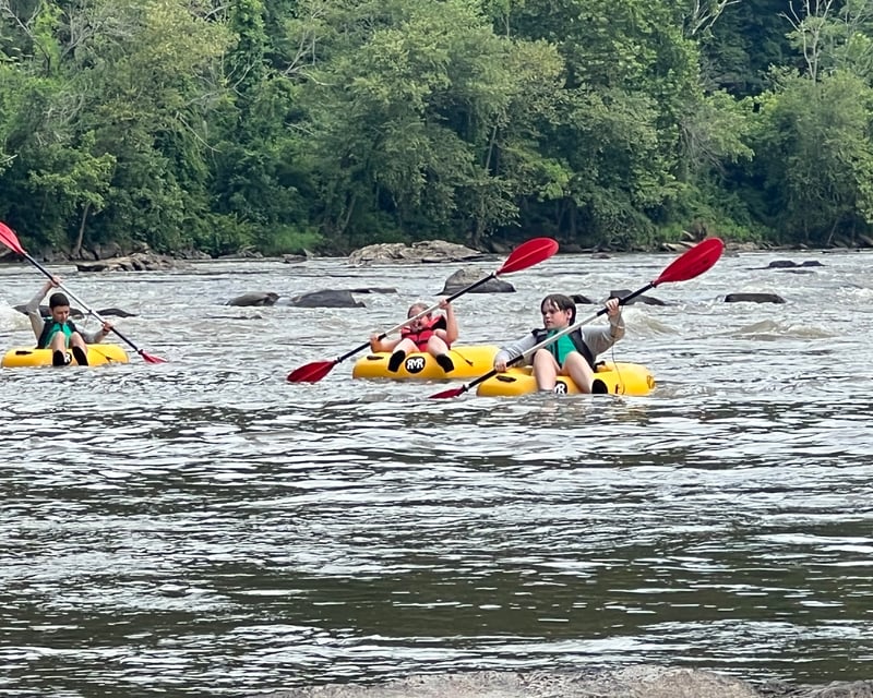 The owners, Jim and Lindsay, consistently earn praise for being incredibly welcoming, knowledgeable, and going above and beyond to ensure everyone has a safe, fun experience. Multiple reviewers mention their thorough safety briefings, helpful communication (even calling to check water conditions for families with kids), and quick problem-solving when issues arise. Their adorable dogs, Willie and Waylon, add an extra touch of charm and often paddle alongside groups. The operation feels personal and family-oriented, with guests repeatedly saying they were made to feel like family. The 5-mile tubing trip on the French Broad River strikes a perfect balance between excitement and relaxation, with some rapids mixed into a scenic float. Reviewers appreciate the quality equipment, complimentary photos and videos, and how smoothly everything runs from start to finish. Groups of all sizes, from couples to 22 people, report having a blast, and families with young children feel especially well taken care of. Located near Marshall, NC (about an hour from Pigeon Forge and close to Asheville), this outfit handles both last-minute drop-ins and reservations, though calling ahead is recommended.