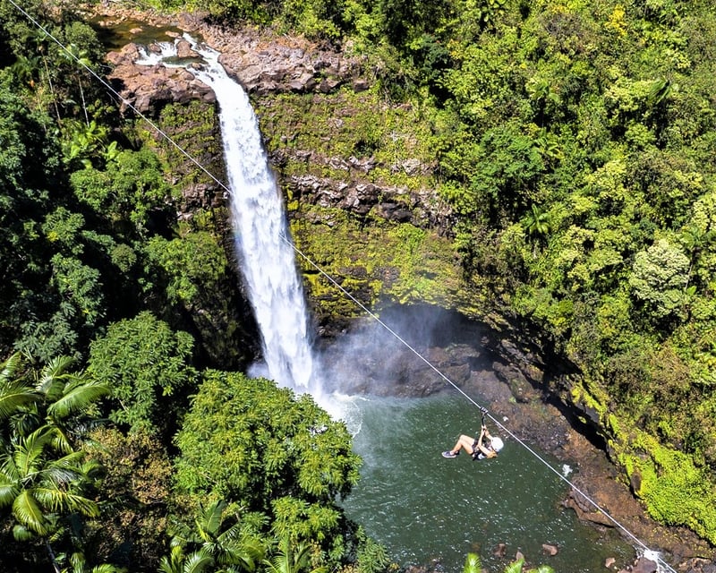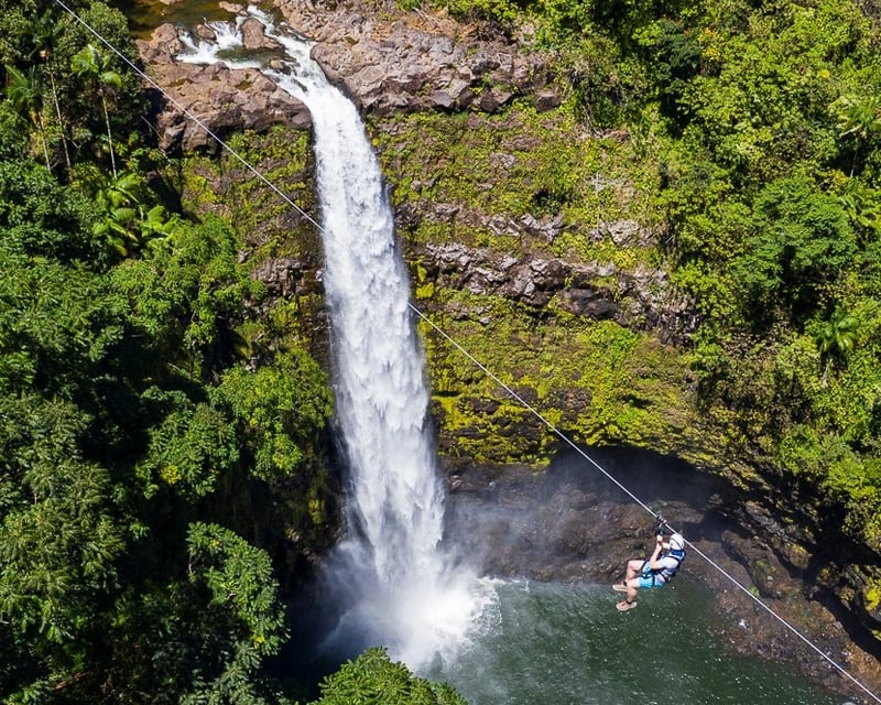 Ride seven ziplines with ocean views and soar over a private waterfall on a guided Big Island adventure