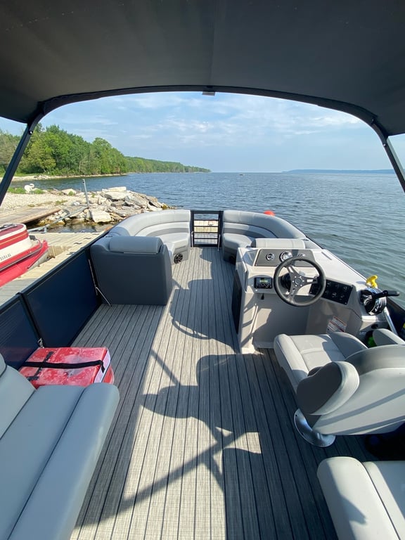Cruise Sturgeon Bay with up to 10 friends on a comfortable pontoon equipped with Bluetooth stereo
