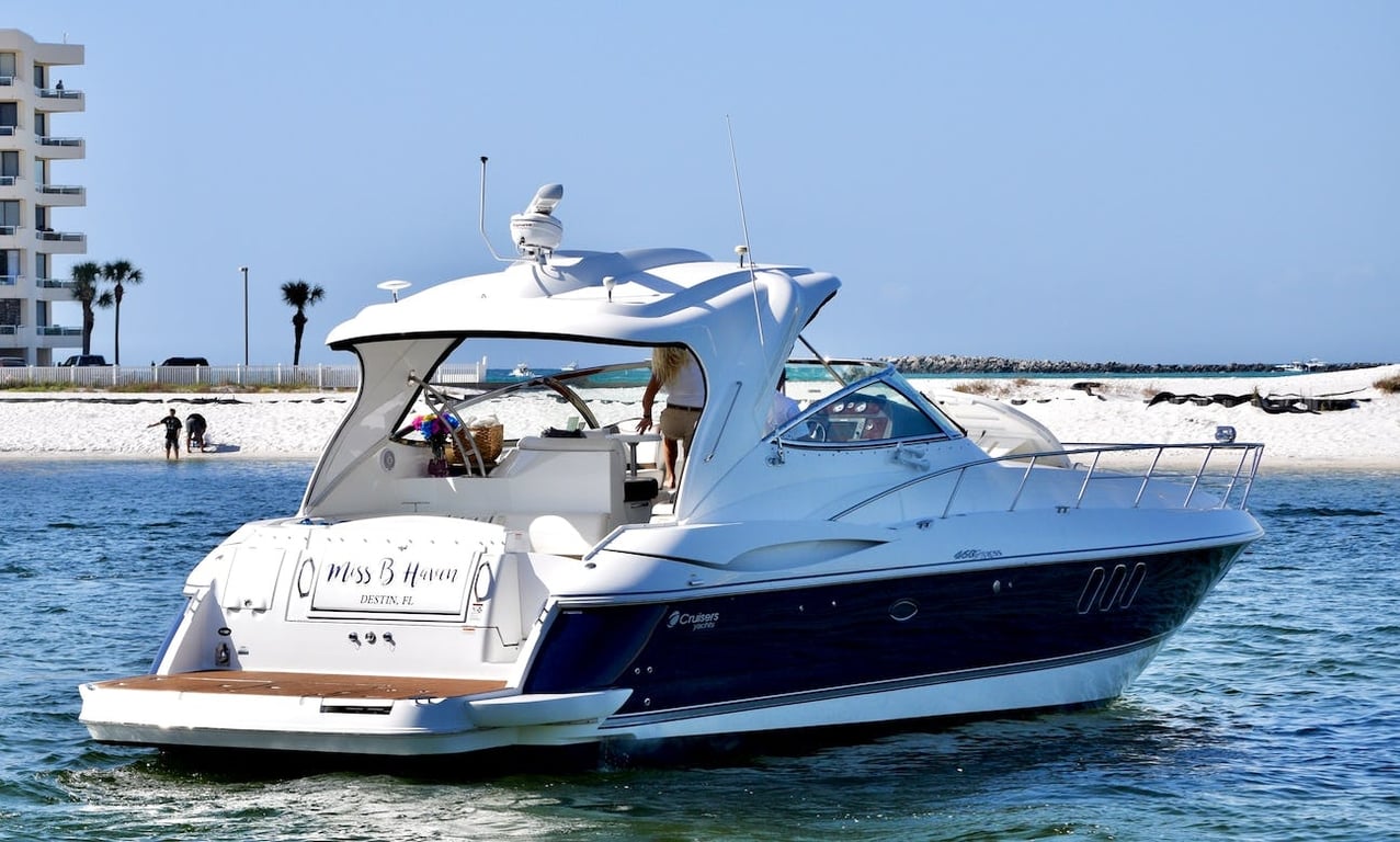 Savor golden-hour views aboard the Miss B Haven yacht in Destin. Cruise calm waters, watch for dolphins, and unwind with friends or family.