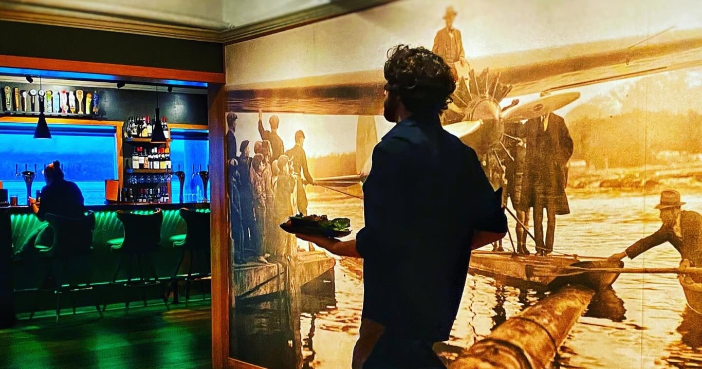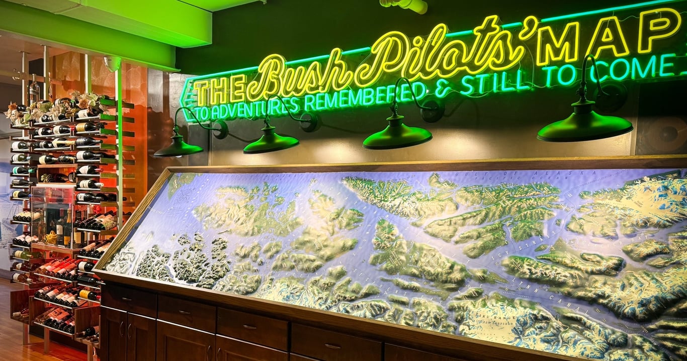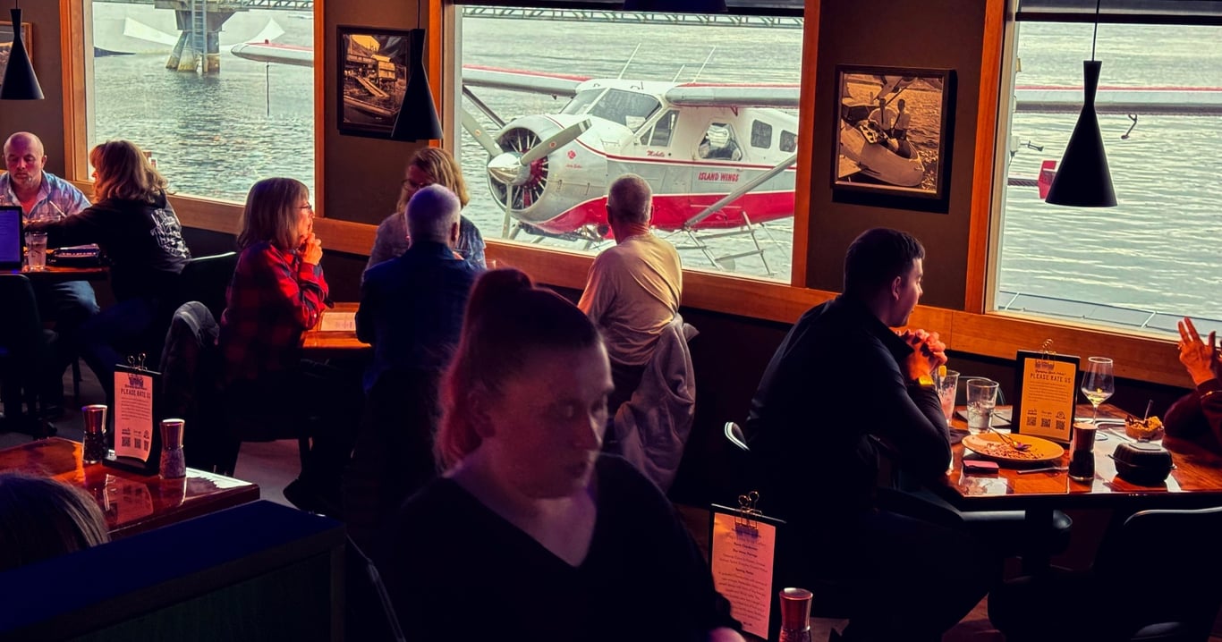 Indulge in a multi-course tasting of fresh Alaskan seafood while overlooking Ketchikan's bustling float plane docks. Explore bush aviation history through rare photographs and stories as you dine in a waterfront lounge.
