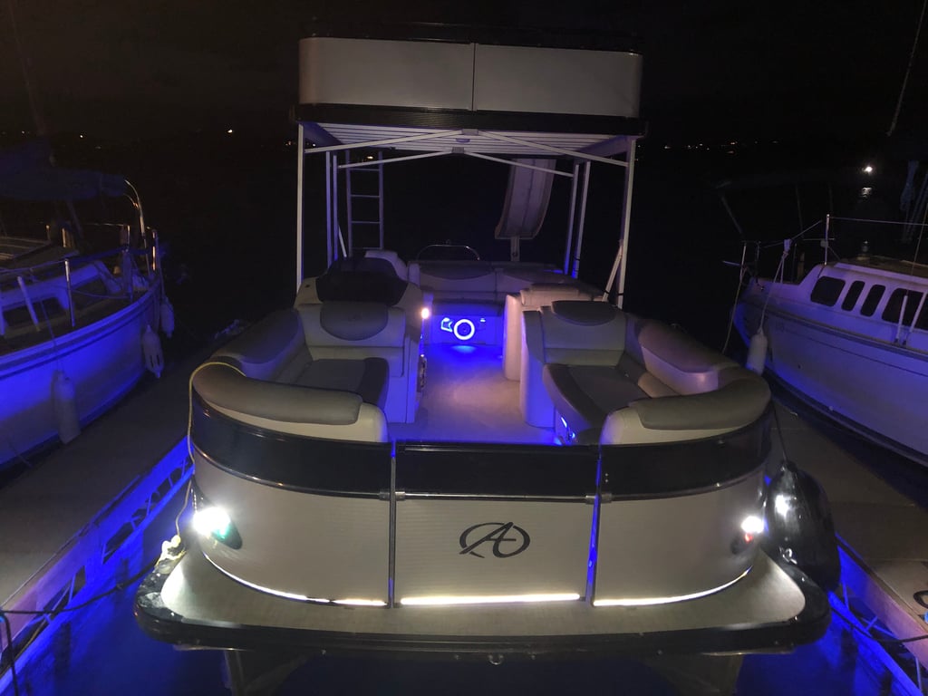 Cruise Lake Travis on a spacious double-decker pontoon complete with captain, slide, and water toys.