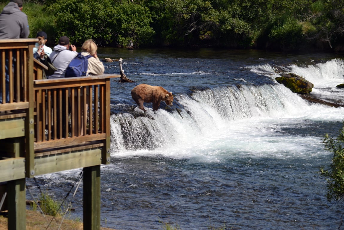 See brown bears in their natural habitat with three hours on the Brooks Falls viewing platforms
