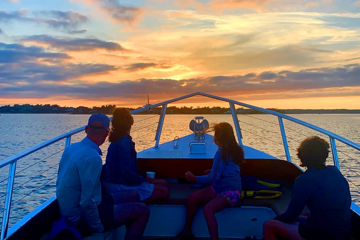 Watch Cape Cod's vibrant sunset while enjoying onboard cocktails and treats