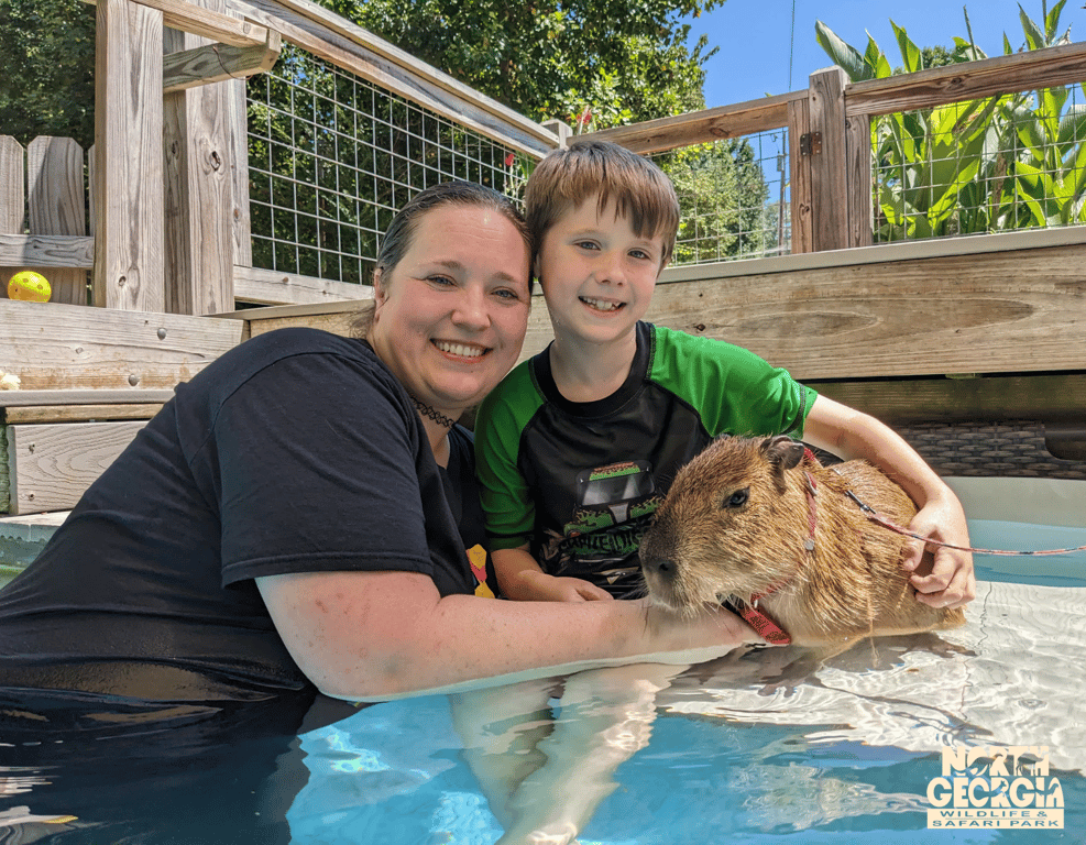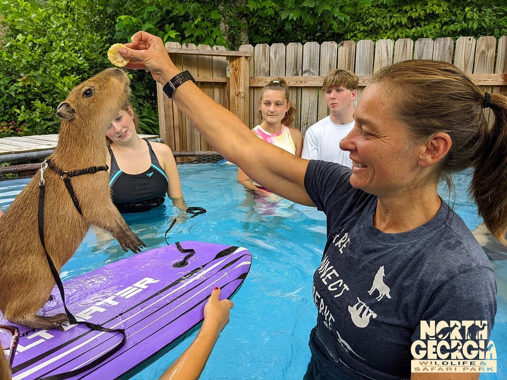 Meet a baby capybara in a shallow splash pool and observe its natural swimming skills during this 45-minute session.