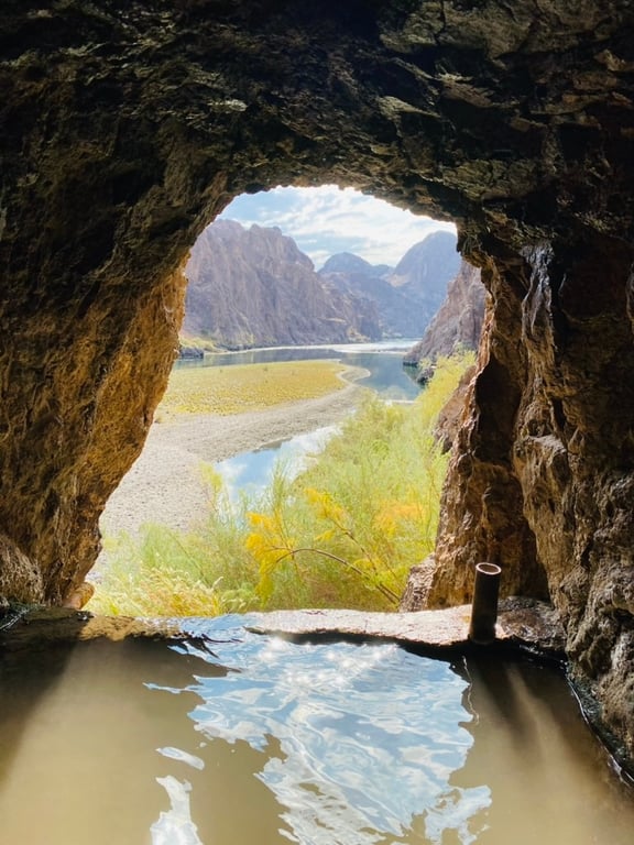 Paddle 12 miles down the Colorado River from the base of Hoover Dam into Black Canyon. Hike side canyons, soak in hot springs and photograph the glowing Emerald Cave.