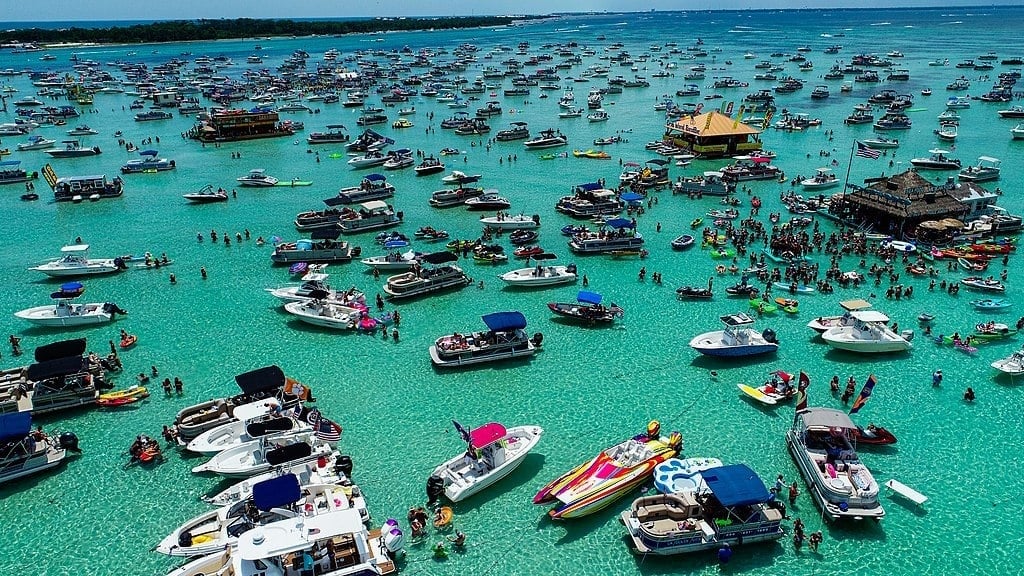 Explore Crab Island aboard a 60HP pontoon cruiser. Start in the Fort Walton Beach & Destin Area on a slower speed cruiser.
