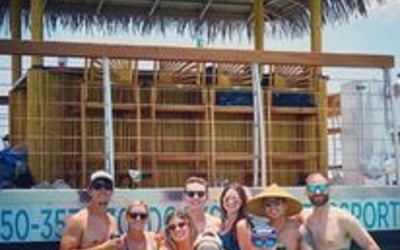 Glide across Destin Harbor and the surrounding bay on a custom 21' tiki boat. Cruise to Crab Island for swimming and sun while enjoying space for coolers and up to 10 friends.