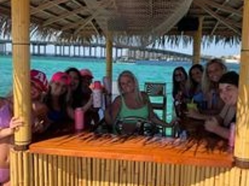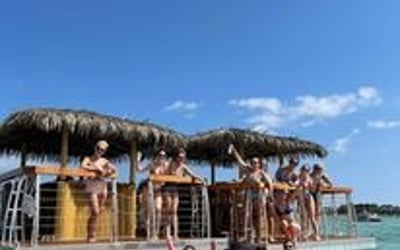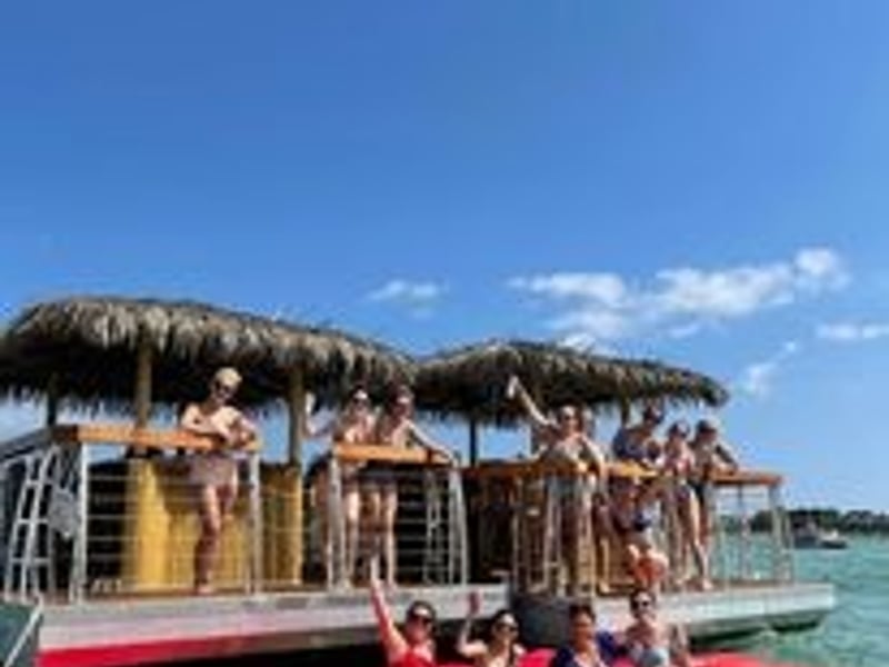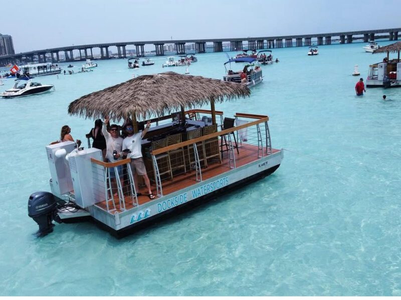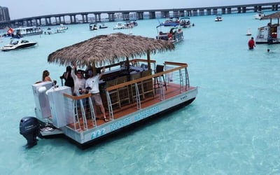 Relax at Crab Island and explore Destin Harbor aboard a private tiki boat