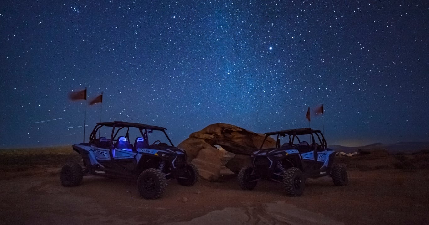 Experience a thrilling UTV ride and stargazing adventure in the Greater Zion desert night.