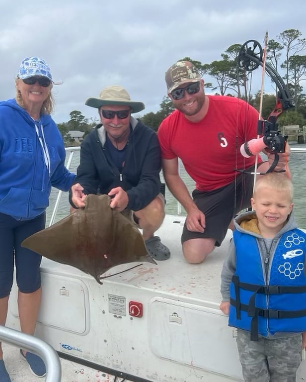 Experience daytime bow fishing on Choctawhatchee Bay and the Intercoastal Waterway with experienced guides. Learn techniques and safety aboard comfortable center console and Carolina skiff boats, welcoming all ages.