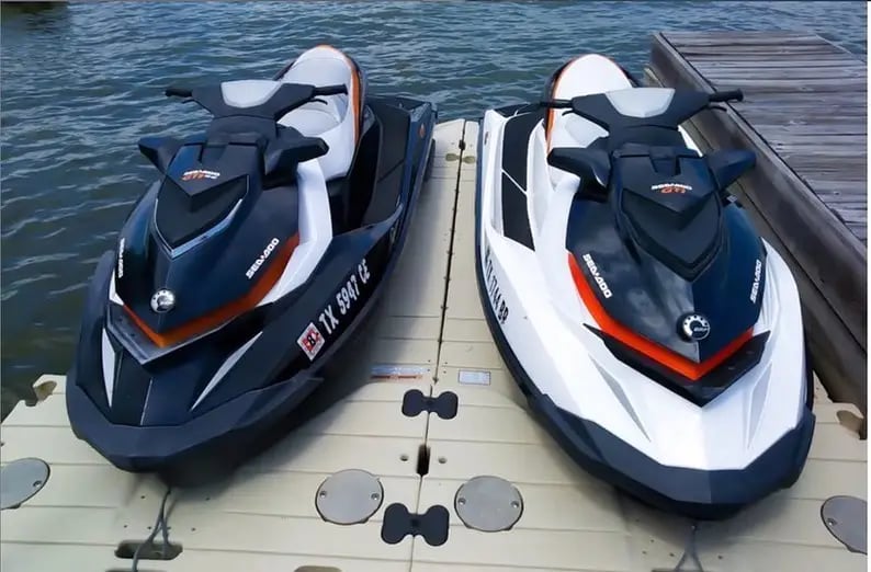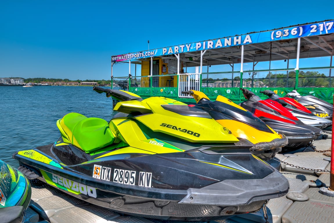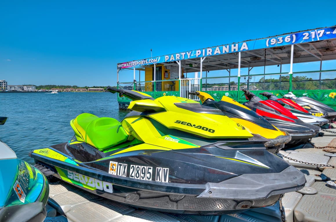 A $400 security deposit is required, and an optional damage waiver is available. Drivers born after September 1 1993 must hold a Texas Boater Education Card. Weight limit is 300–450 lb per watercraft.