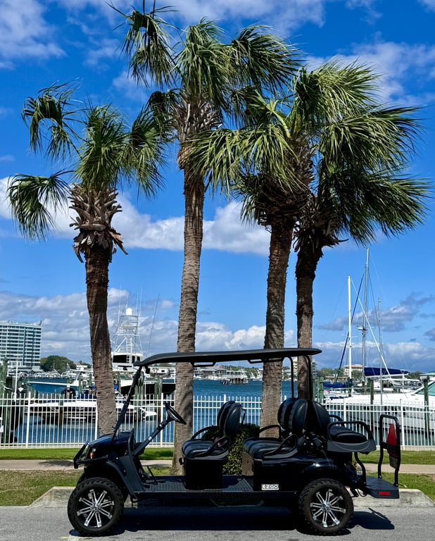 Explore Destin in a brand-new street-legal 6-person golf cart. Cruise Scenic Highway 98, head to the beach, and enjoy a fun, convenient ride.