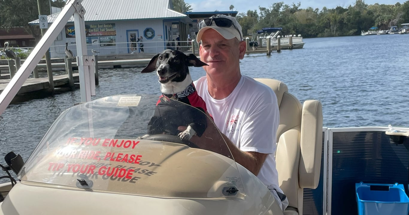 Cruise the Homosassa River on a roomy pontoon with your dog, enjoying wildlife sightings and an onboard restroom
