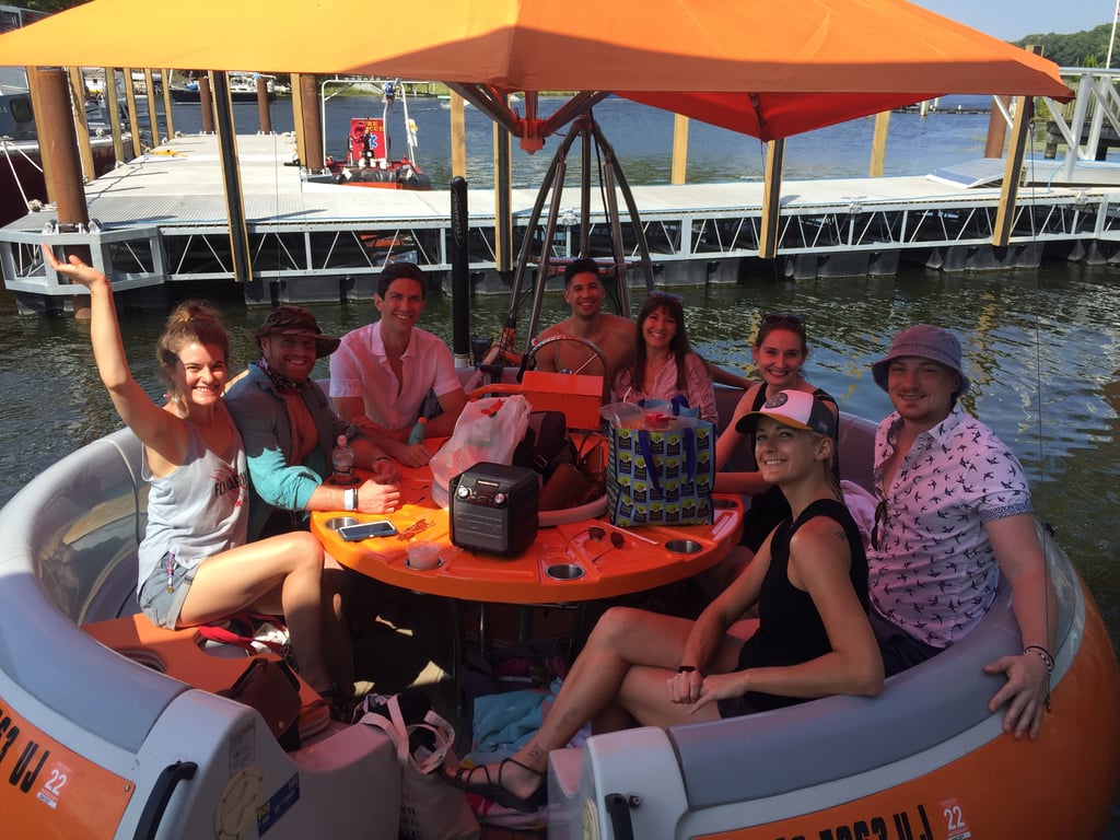 Experience a unique cruise on Tempe Town Lake with friends or family aboard a donut boat. Enjoy a comfortable round table, music, and scenic views as you relax on the water.