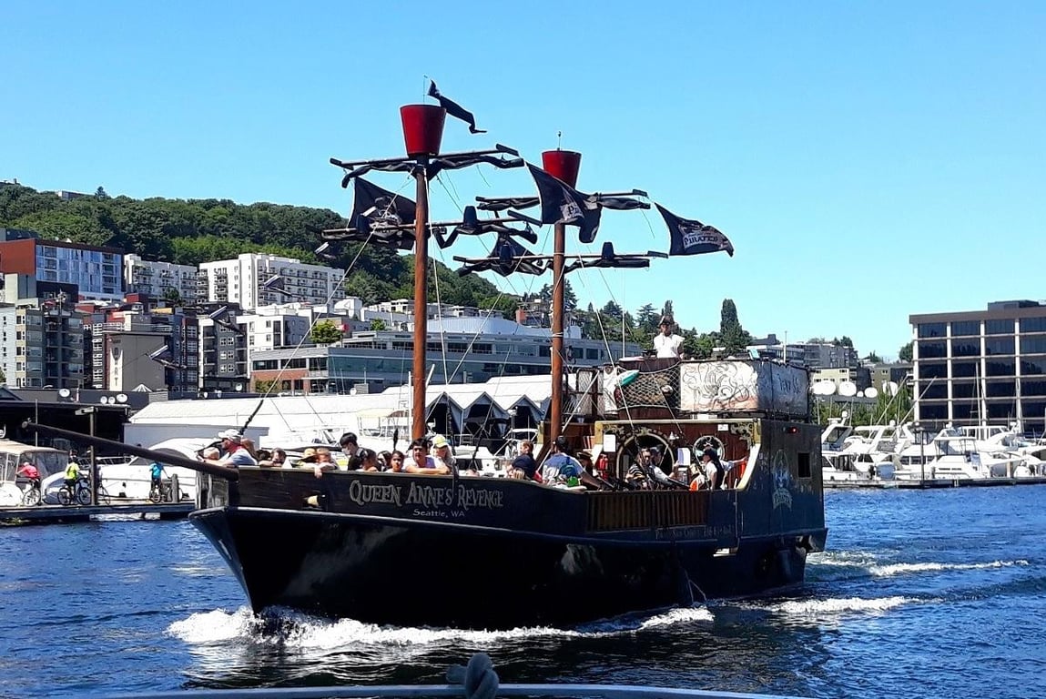 Set sail on Queen Anne's Revenge for a lively family cruise across Lake Union. Play pirate games, fire water cannons, and hunt for treasure during this one-hour voyage.