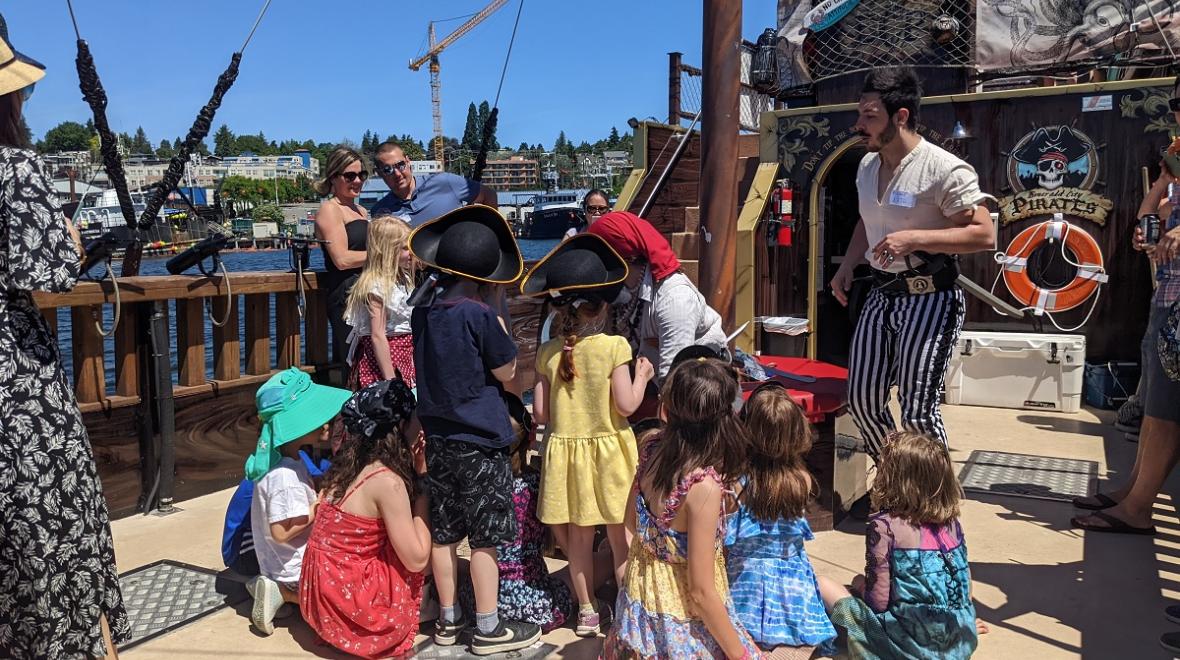 Enjoy a one-hour interactive pirate adventure with games, water cannons, and treasure for kids.