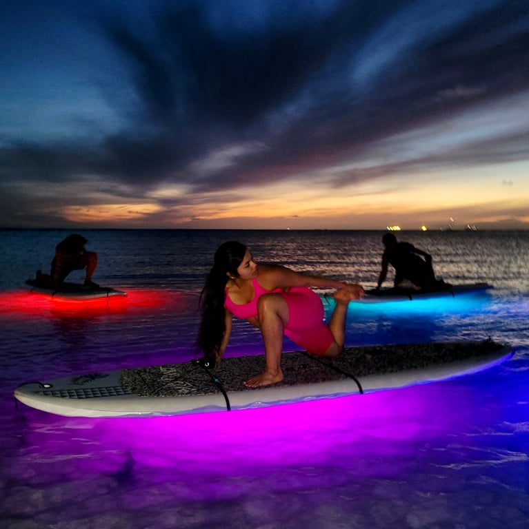 Experience an evening floating yoga class illuminated by LED lights as Honolulu shifts from dusk to night. Close your practice with a peaceful meditation and watch a fireworks show from the water.