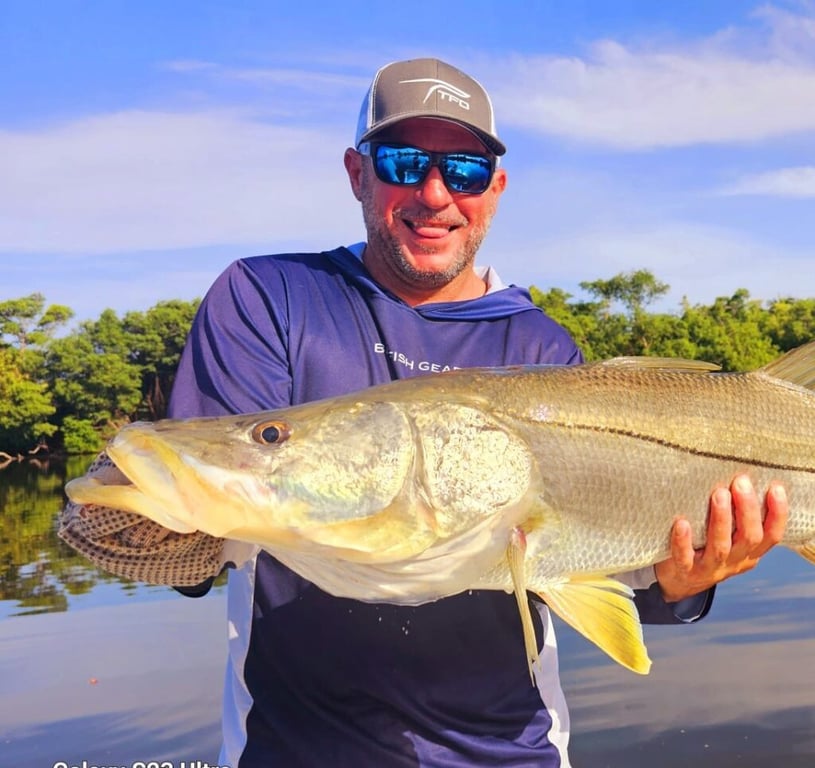 Fishing is unpredictable; on average you may see 6–7 strikes and landing 2–3 tarpon is considered successful.