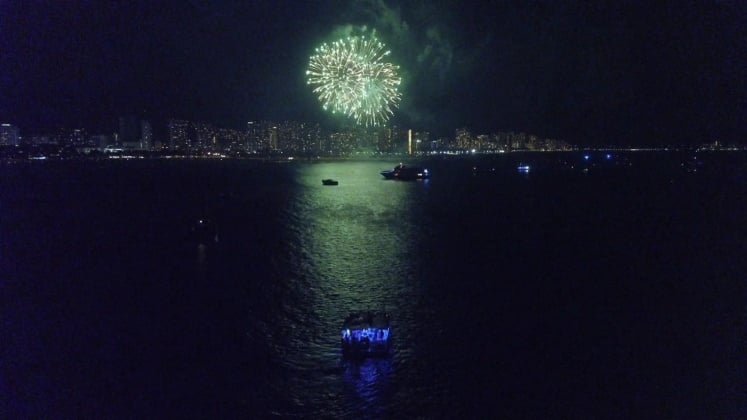 Dance to a live DJ while watching Waikiki's fireworks from a catamaran