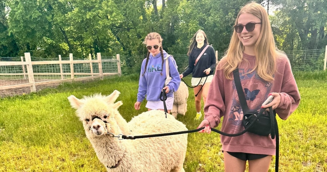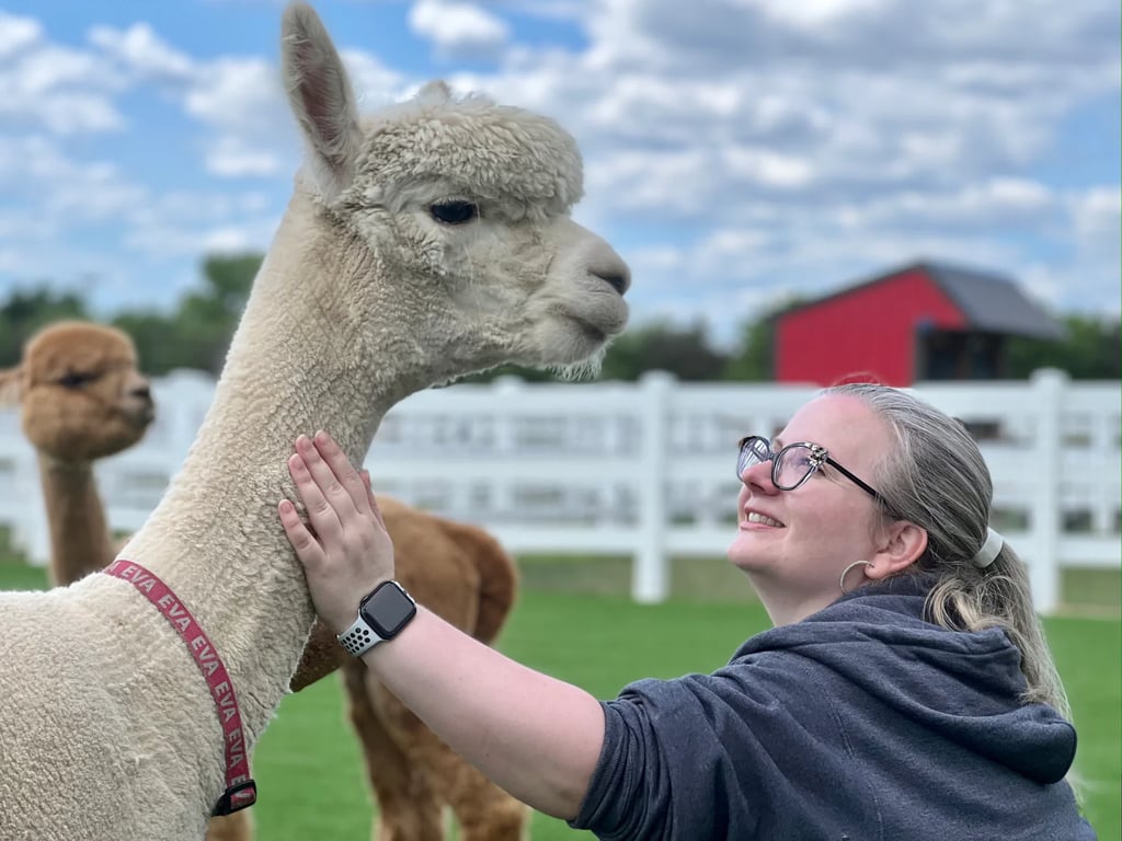 Stroll alongside friendly alpacas on a scenic Wisconsin farm and learn about these charming animals.