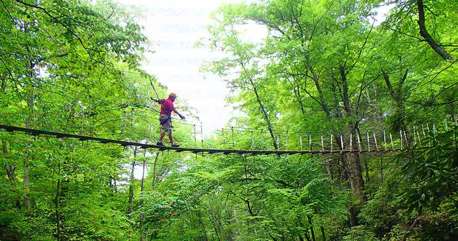 Soar above forest canopies on ten ziplines, an ATV ride, and a 50-ft swinging bridge