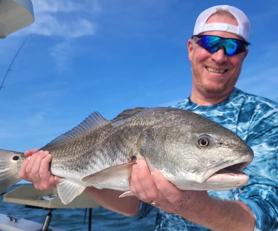 Cast for redfish, trout, mackerel, and more aboard a stable 26 foot catamaran
