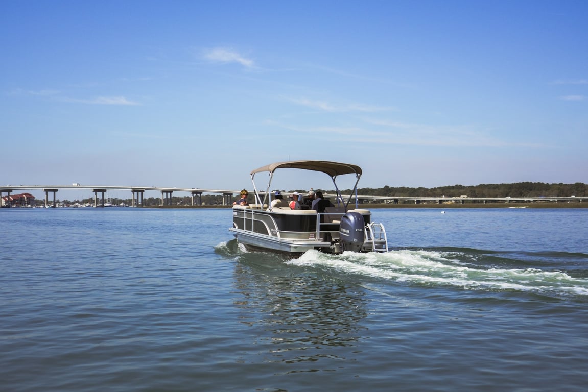 Pilot a spacious pontoon to explore Broad Creek and Calibogue Sound at your own pace