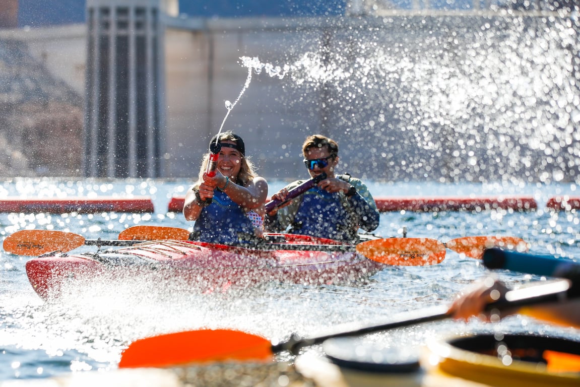 Guided Lake Mead kayak tour to Hoover Dam with shuttle, park entry, and lunch