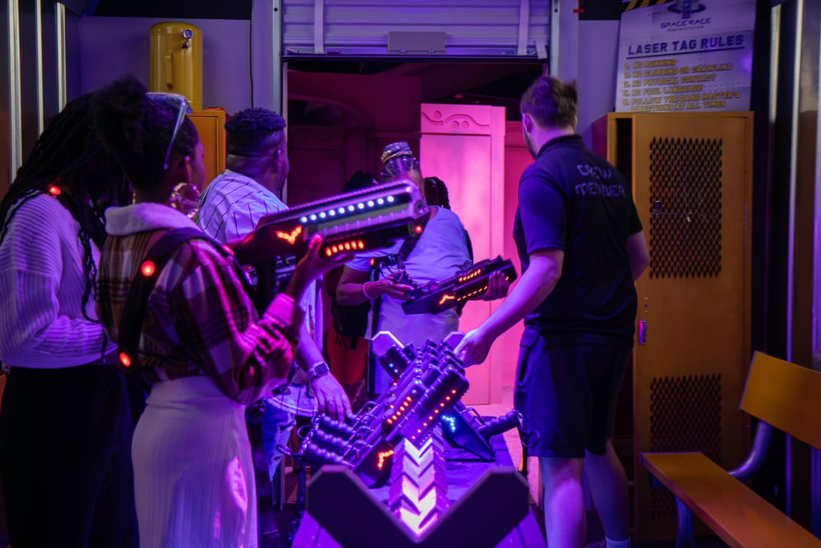 Immerse yourself in a thrilling laser tag arena for all ages and test your skills in an action-packed setting.