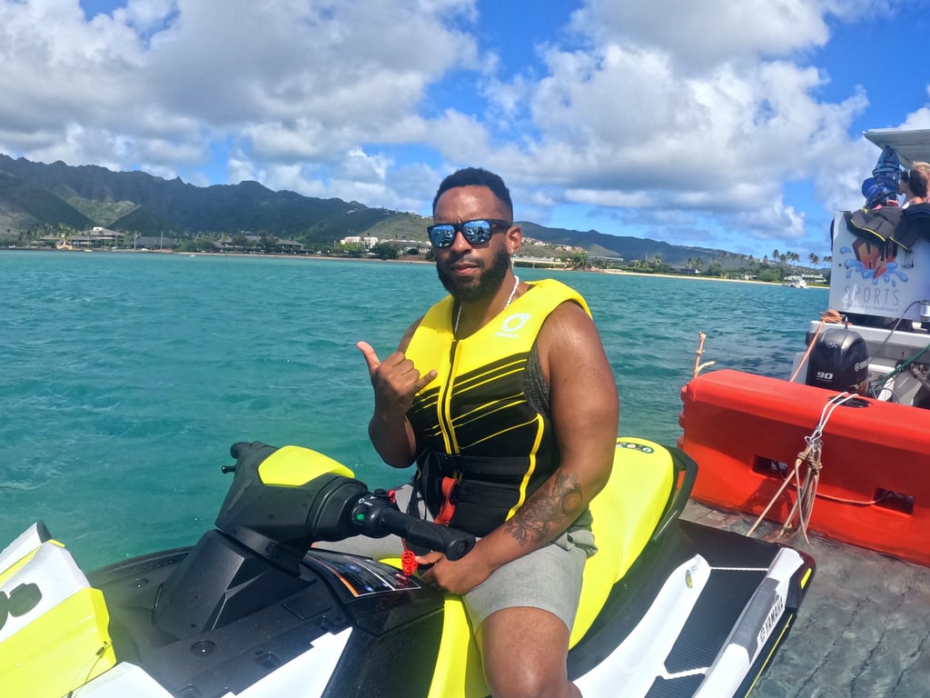 Ride Yamaha jet skis in protected Maunalua Bay under licensed captain supervision