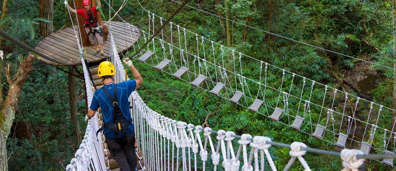 Fly across eight ziplines and sky bridges with certified guides in a private Hawaiian forest reserve