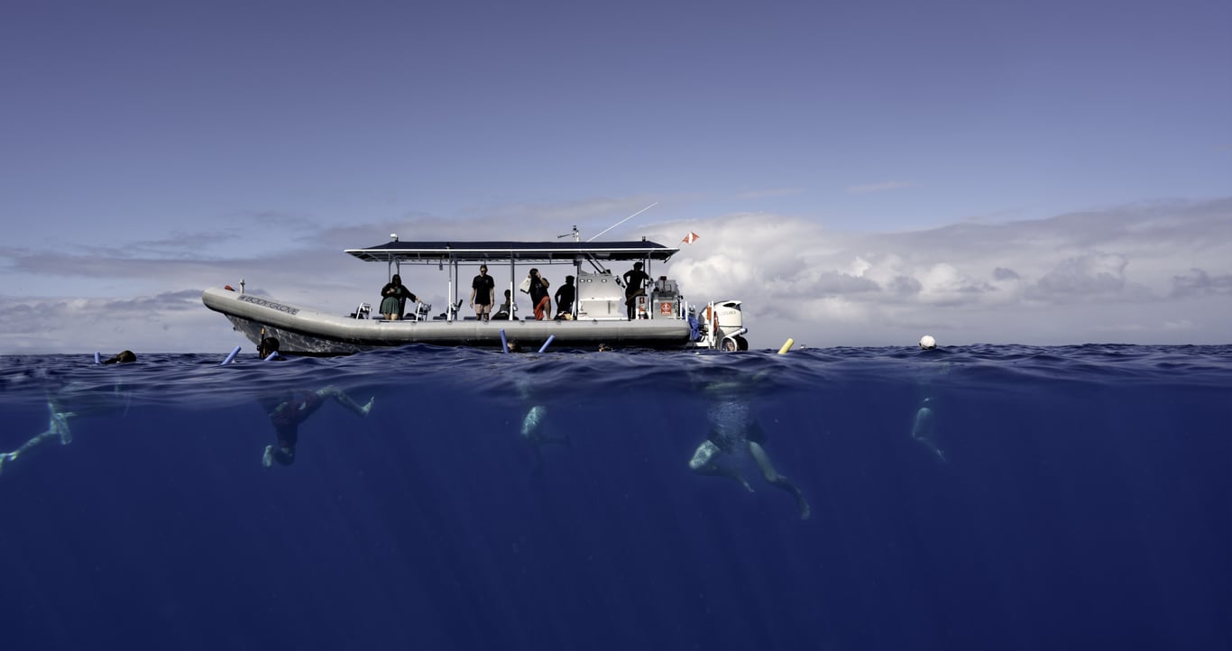 Step aboard the 41 ft Kona Explorer Super Raft for a thrilling whale-watching adventure off Kailua Kona. Enjoy narration from a marine naturalist, comfortable seating, shade, and refreshments as you look for breaching humpback whales, with sightings guaranteed.