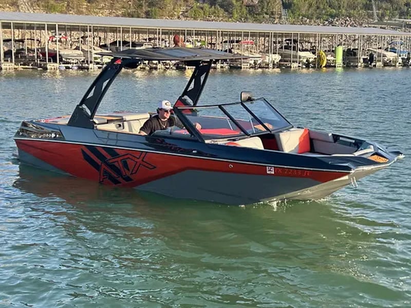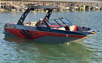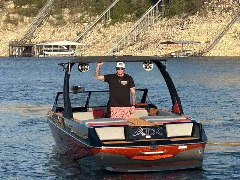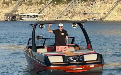 Charter an ATX 22 Type-S with a captain for wake surfing, wakeboarding, and cruising Lake Travis