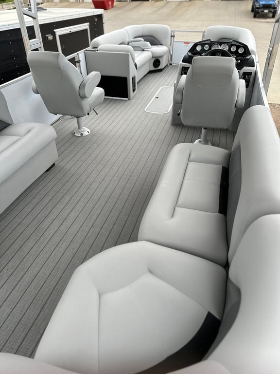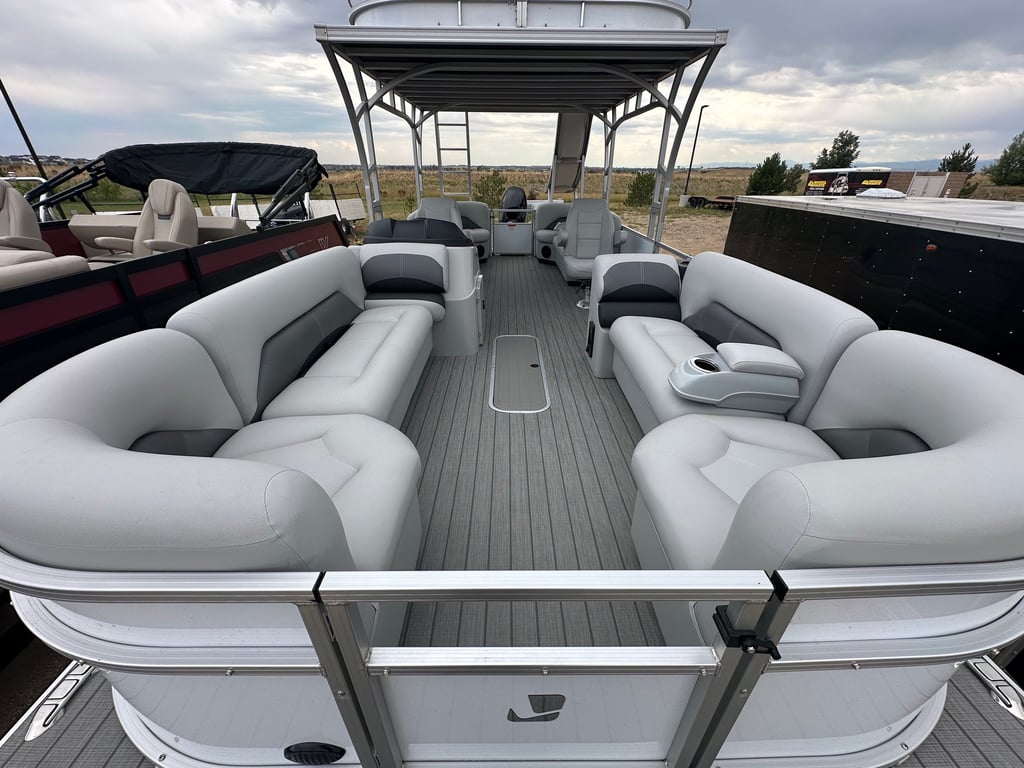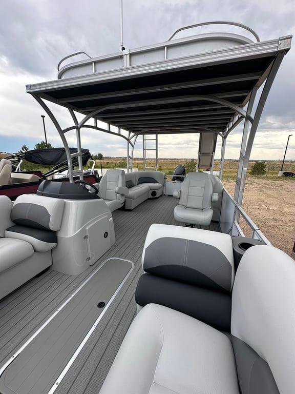 Enjoy a full day on the water aboard a spacious Landau Island Breeze 252 tritoon. Glide across Boyd Lake or your chosen destination, relax on the upper sun deck, and make a splash down the built-in water slide.