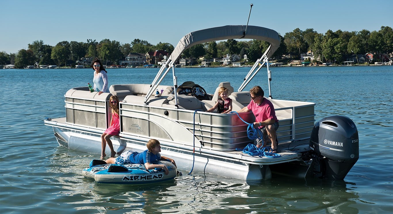 Explore the lake aboard a luxury 22 ft Bennington tri-toon with a 150hp Mercury. Bring up to 12 guests and use the included cooler and life jackets.
