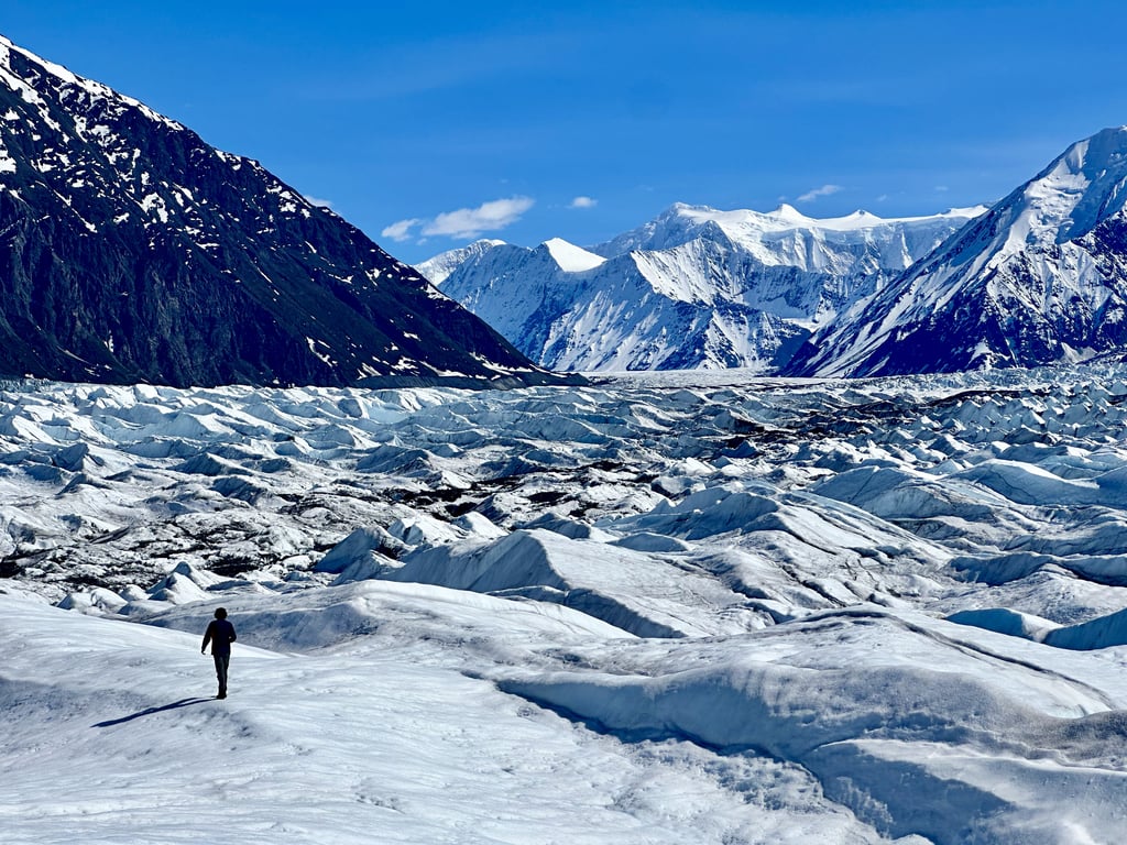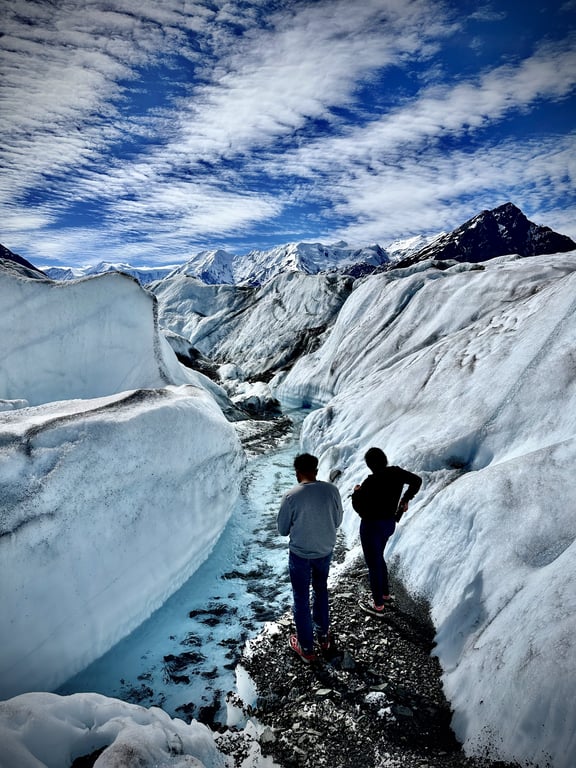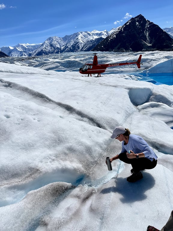 Fly by helicopter to a vibrant glacier pool and explore Matanuska Glacier on foot.