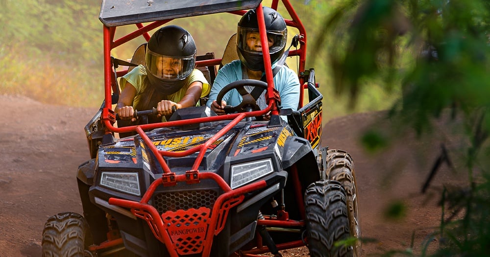 Tackle a rugged jungle course and share driving thrills on a two-seater ATV.