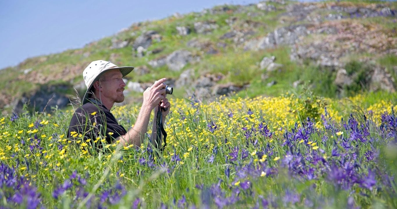 Paddle to Yellow Island in small groups and see seasonal wildflowers on a guided kayak tour