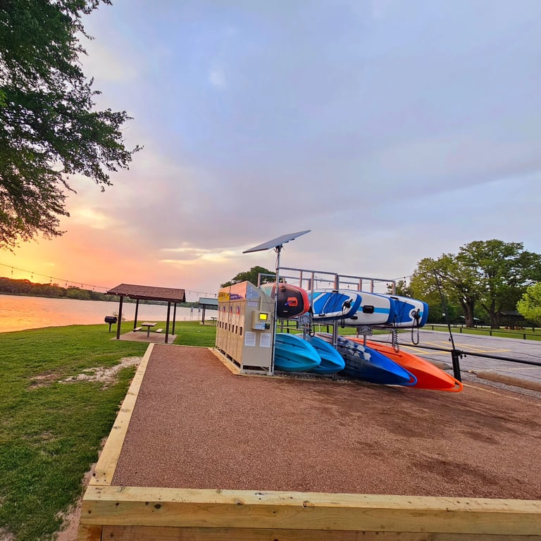 Enjoy Lake Lewisville with premium paddleboards and kayaks launched from Pilot Knoll Park. Pick up gear any day with a convenient self-service kiosk.