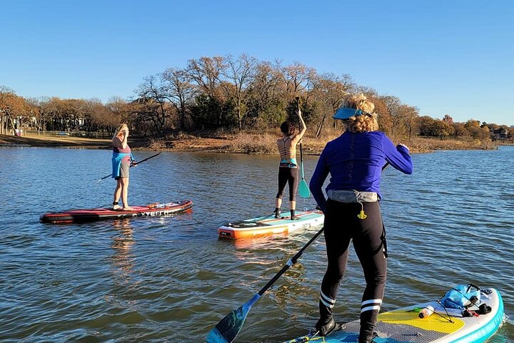 Juliet and her team have built something special here at this Lake Lewisville location. Reviewers consistently praise her as an exceptional instructor who makes paddleboarding accessible for complete beginners while still offering value to experienced paddlers. The beginner classes get particular attention, with multiple people mentioning how comfortable and confident they felt after just one lesson. Beyond the basics, there's also a unique SUP yoga experience with instructor Lucinda that includes floating meditation, which several guests found surprisingly relaxing. The setup is impressively convenient with a self-serve kiosk for rentals, and the location itself gets high marks for calm waters and scenic coves without heavy boat traffic. What stands out is how accommodating the staff is, meeting groups at 6 AM for sunrise paddles or helping customers choose between hardside and inflatable options. Juliet also leads international travel adventures, including catamaran trips to the Greek islands that reviewers describe as life-changing experiences with incredible food and community. The overall vibe is welcoming and supportive, with people genuinely excited to return and bring friends along.