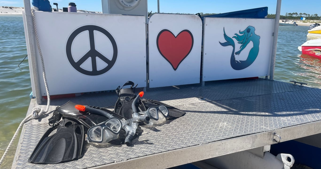 Cruise calm Pensacola waters on a covered pontoon to spot playful dolphins and coastal landmarks.