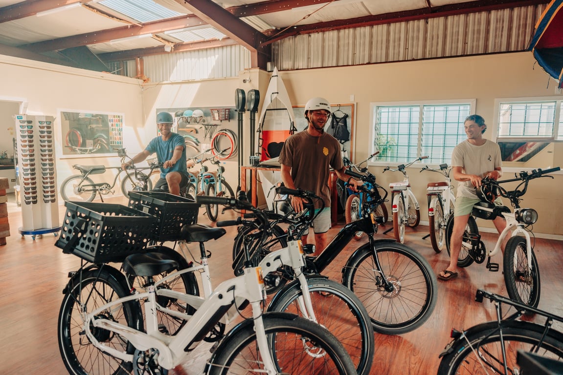 E-bike, kayak, snorkeling gear