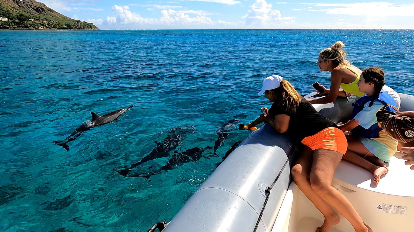 Captain Chris and his crew have created something pretty special here. This isn't your typical crowded tour boat experience. These are private charters on a speedboat, which means you get to customize your day and zip around to spots the bigger vessels can't access. The vibe is relaxed and fun, with good music playing while you cruise the coastline. People consistently rave about how knowledgeable and personable Chris is, and his crew members (Sara, Sarah, and Josh get shoutouts) seem equally great at making guests feel comfortable and entertained. The marine life sightings are genuinely impressive. Multiple groups encountered spinner dolphins, humpback whales, sea turtles, and tons of fish while snorkeling. Chris apparently has a knack for finding wildlife and will happily follow pods of dolphins or whales for extended periods. One reviewer even mentioned the crew stopping to pick up trash from the ocean, which is a nice touch. There's also a unique tiki sunset cruise option that takes you to La Mariana, a vintage tiki bar only accessible by boat, which sounds like an absolute blast based on the glowing descriptions. One honest three-star review does offer a different perspective worth noting. That family felt the captain was distant and hard to connect with, and they were taken to a choppy snorkeling spot off Waikiki Beach despite rough conditions, leading to seasickness and poor visibility. They felt it wasn't worth the premium price tag. However, this seems to be the exception. The overwhelming majority describe warm, personalized service and a willingness to adapt to what guests want to see, whether that's dolphins, whales, or just cruising with good vibes.