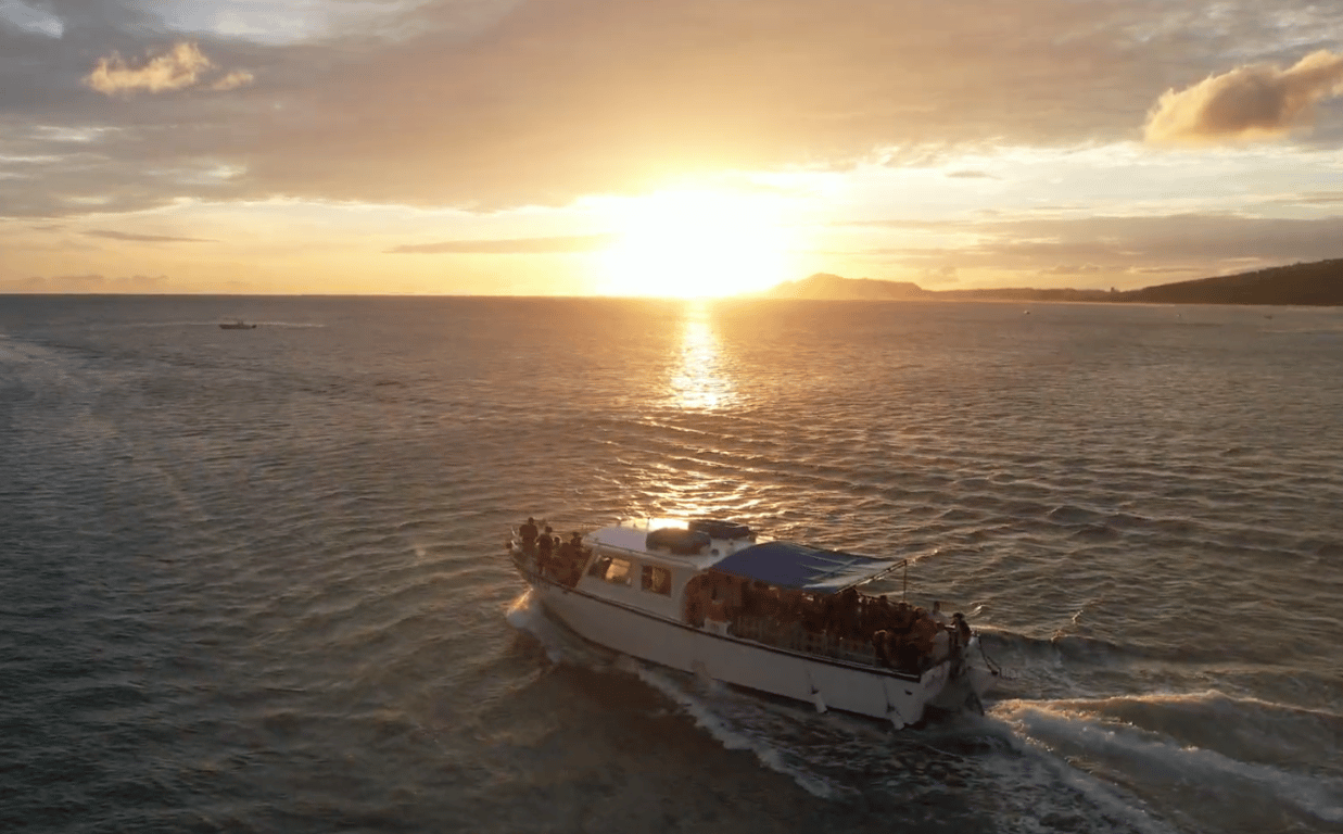 Cruise Maunalua Bay on a spacious catamaran with local DJs and time to swim when conditions allow. Meet at the dive shop in Hawaii Kai and enjoy an easy afternoon or sunset outing on the water.