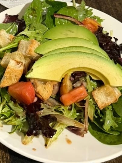 • Garden greens with avocado, tomato & balsamic vinaigrette