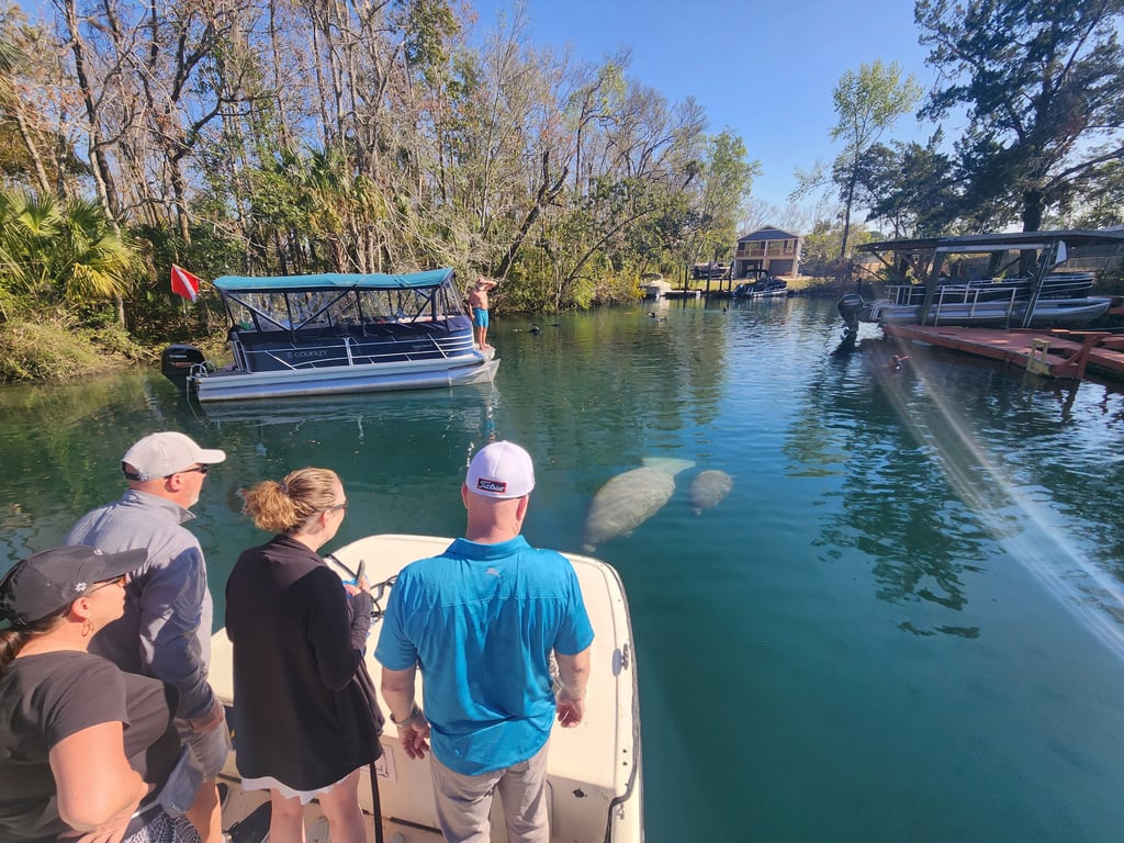 Nature's Discovery consistently delivers outstanding manatee encounters with a crew that clearly loves what they do. Guides like Caleb, Jake, Taylor, and Jaden earn repeated praise for their extensive wildlife knowledge and genuine enthusiasm. Captains Evan and John expertly locate manatees quickly, often within minutes, then stay in the water alongside guests to ensure close, respectful interactions. Multiple families mention how patient the staff is with children and grandparents alike, making this accessible for all ages. The experience goes beyond just spotting manatees. Guests frequently see mothers with calves, and guides actively track the animals in the water to maximize viewing time while maintaining proper behavior around these protected creatures. Tours often include stops at refreshing natural springs and sightings of eagles and ospreys. The crew captures plenty of photos and sends them promptly after each trip. Even when groups book during off-season or end up as the only passengers, the team maintains the same high-energy, personalized service that makes people feel like they're exploring with friends rather than on a commercial tour.