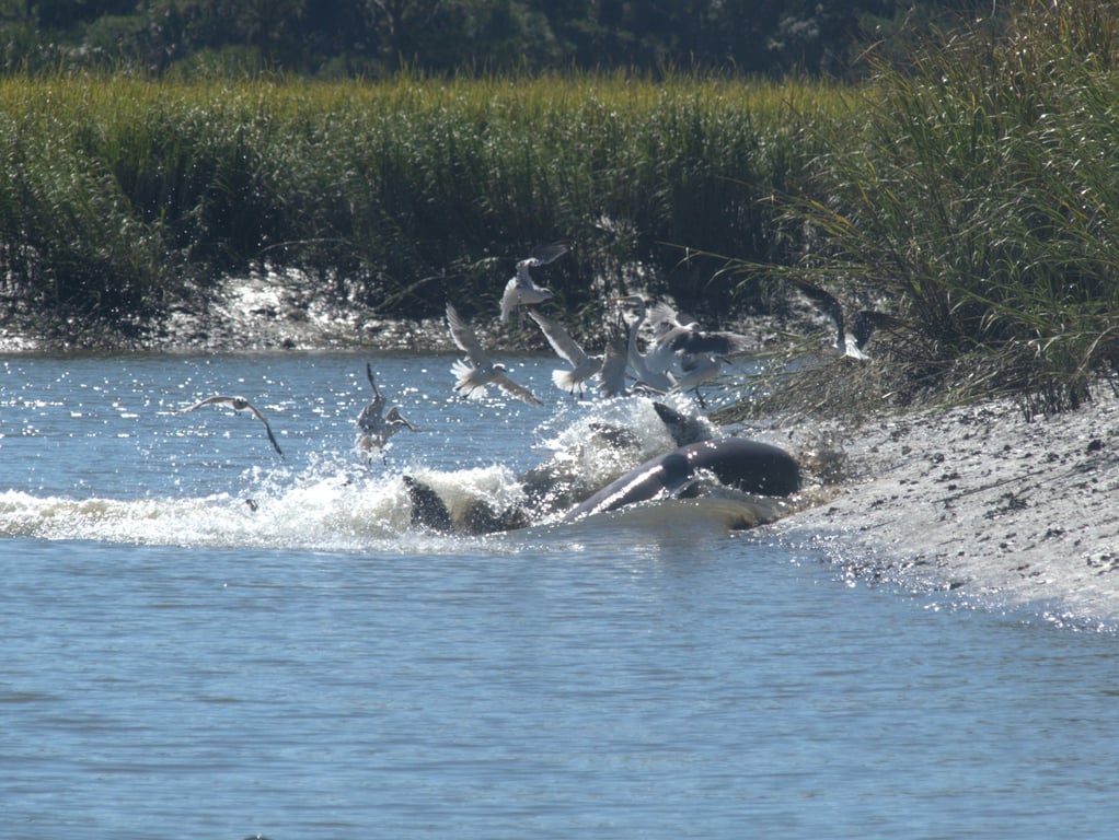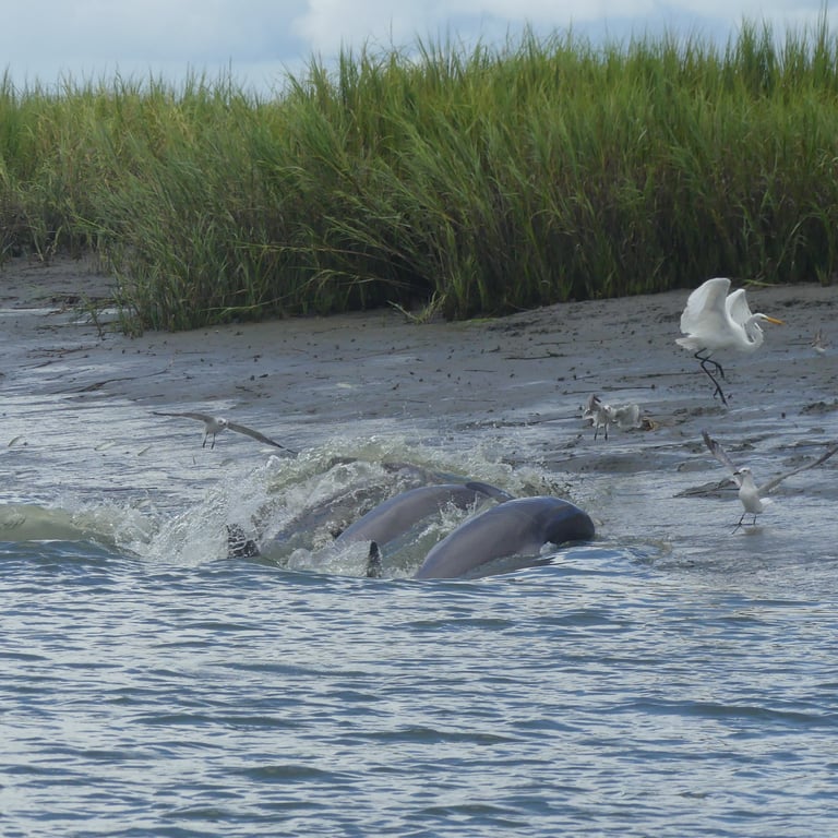 Join your captain for a private excursion through the back waters of the salt marsh to look for dolphins strand feeding. Watch these beautiful creatures play, feed, and socialize as you discover the salt marsh and its inhabitants.