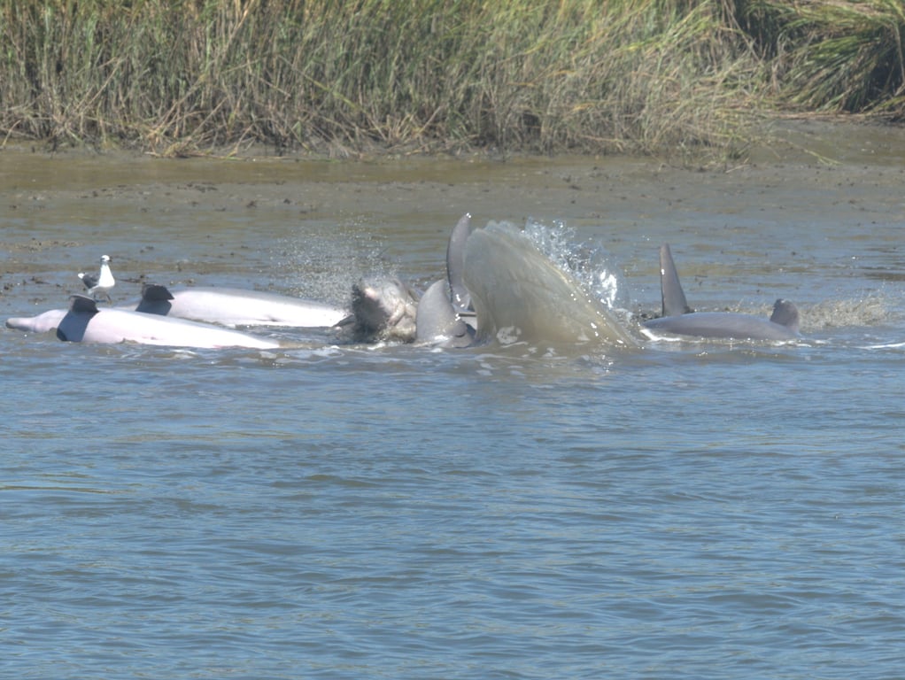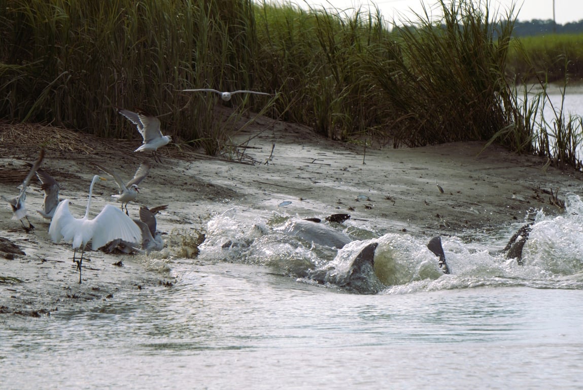 Search the salt marsh for strand feeding dolphins on a private 2-hour charter